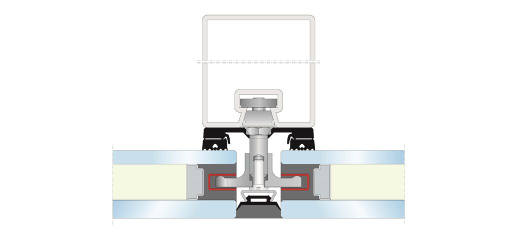 Die Tragekonstruktion (Pfosten-Riegel-Systeme) hat generell das Eigengewicht der Verglasung mit geeigneten Glasträgern entsprechend Anlage B der ETA-10/0362 aufzunehmen. Sind keine geprüften Eindrehhalter aus dem verwendeten Pfosten-Riegel-System vorhanden, sind diese entsprechend Anlage B der ETA-10/0362 vom Fassadenhersteller zu bemessen.