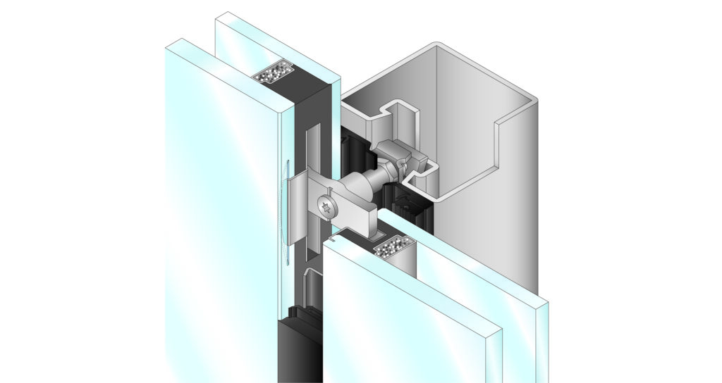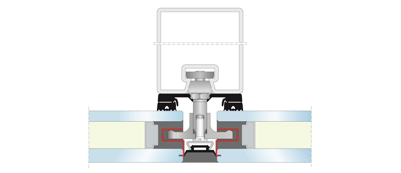 Die VARIO-Elemente werden über glasintegrierte Verankerungen mittels Eindrehhalter mechanisch an der Fassadenkonstruktion befestigt. Das Glas wird somit an die innere Dichtebene angepresst. Die äußere Dichtung wird – wie bei SSG Verglasungen auch – durch eine Wetterfuge dauerhaft und flächenbündig versiegelt. Sichtbare Glashalter oder Deckschalen können ersatzlos entfallen.