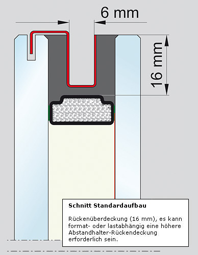 | SZR | mind. 16 mm mit Silikonrandverbund inkl. VARIO Einschübe, Abstandhalter-Rückenüberdeckung > 16 mm |