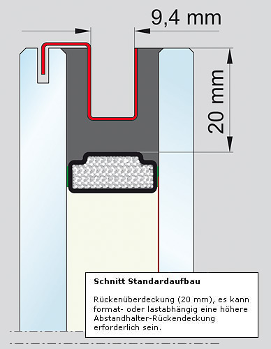 | SZR 2 | mind. 12 mm mit Silikonrandverbund Abstandhalter-Rückenüberdeckung > 16 mm |